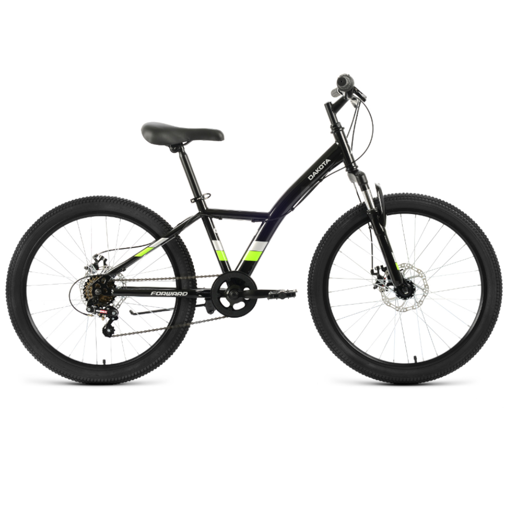 Велосипед FORWARD DAKOTA 24 2.0 D (24" 6 ск. рост. 13") 2022, черный/зеленый, RBK22FW24593